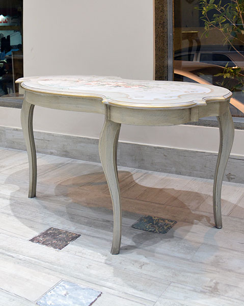 Shabby Chic Rococo design table with Rustic floral hand painting – golden shades